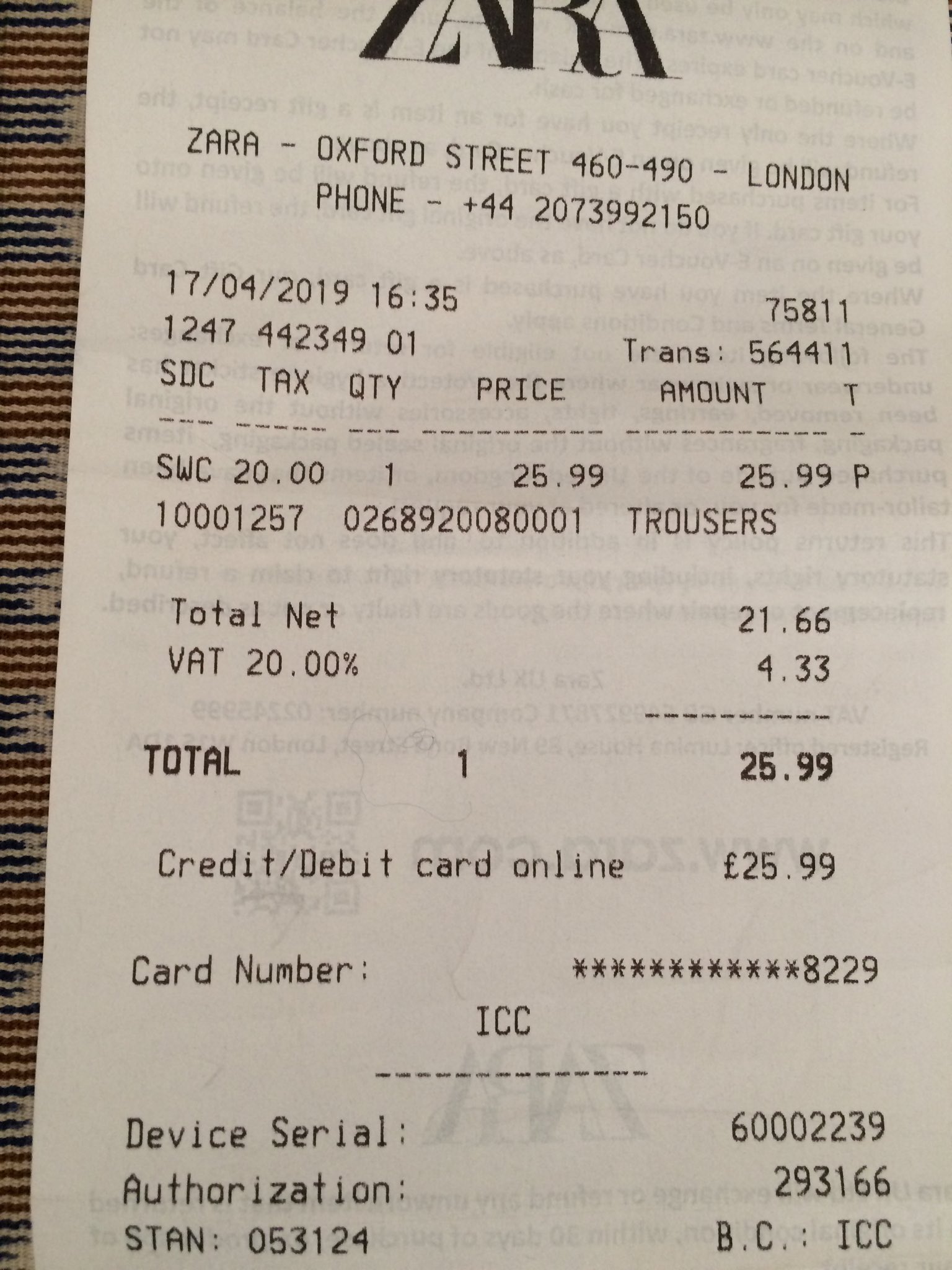 Caroline Dale On Twitter Zara Label On Item Says 22 95 My Receipt 25 99 Staff Will Not Accept Request For Refund Of Difference Which Is Apparently Due To Transport From Spain And U K